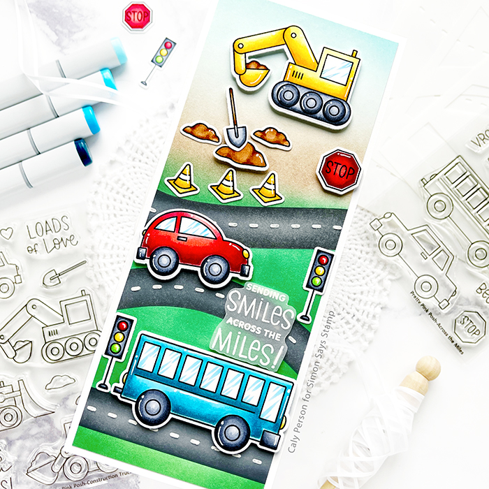 This card is fantastic, Caly! Love that you created a slimline card to really stretch all the supplies. My son just turned 2 and loves his construction trucks and vehicles, so this release is perfect.