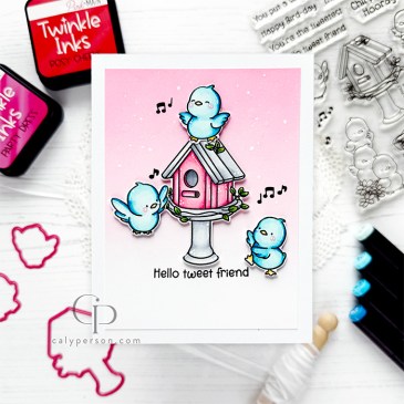 Hi there! Today’s tweet card uses the Chirp Chirp Hooray set from Pink & Main and also features the new Twinkle Inks! These inks have a subtle shimmer in them and is so lovely when ink-blended. Card size: A2 (4.25″ x 5.5″) Products used: I hope you enjoyed this project! Thanks so much for visiting! … More Pink & Main – Chirp Chirp Hooray