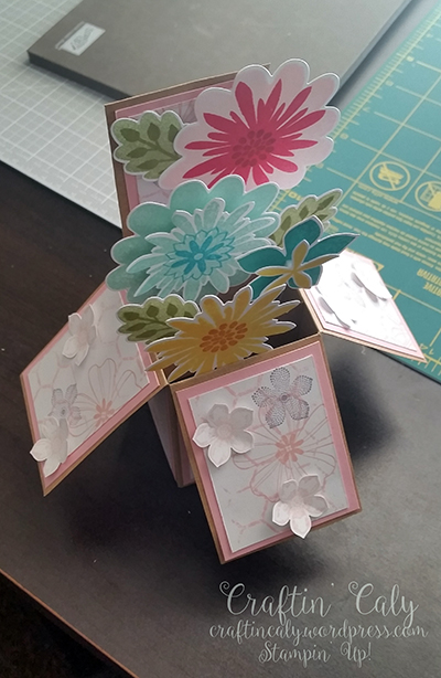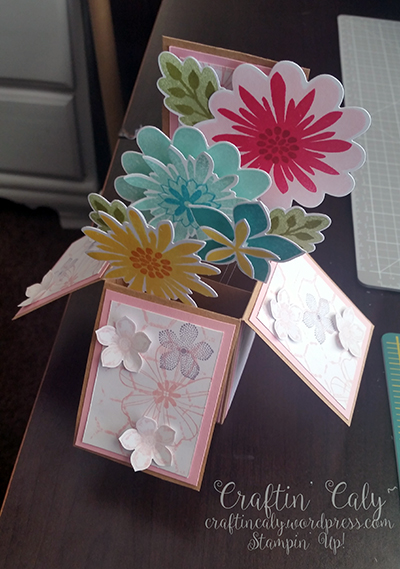 CARD IN A BOX. These are the coolest cards. It folds flat into a standard card size and fits in a regular envelope. When you open the card and stand it up, it’s a box with pop up sentiments!
