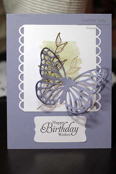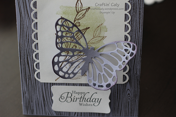 I’ve seen a lot of cute cards and tried to do my own version – the butterfly is obviously the main feature. I used Wisteria Wonder cardstock for both the cardbase and the butterfly.