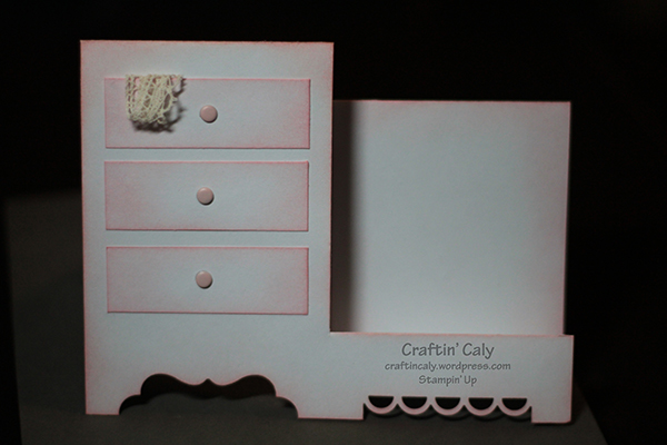 I used a label punch to punch the dresser side to give it the look of dresser legs and a border punch on the right side. Then I sponged on the sides and edges with Pink Pirouette.