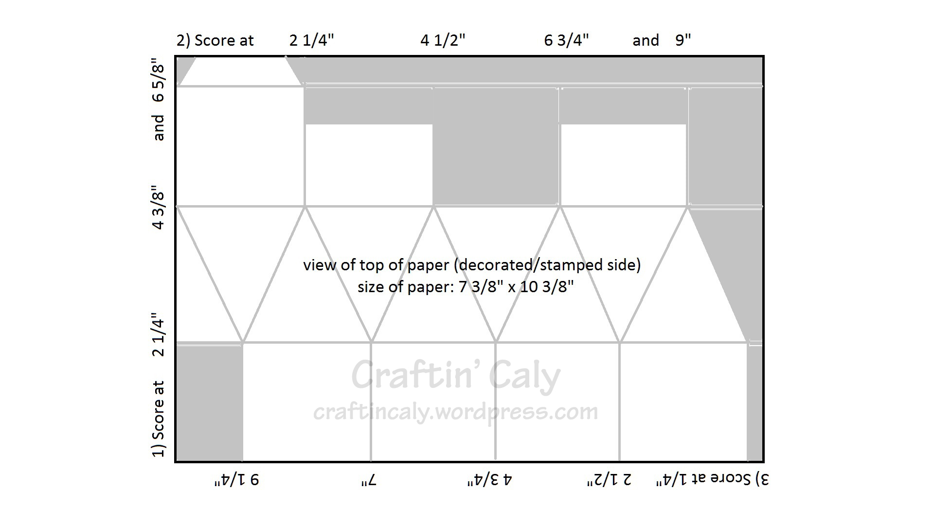 Here is a nice diagram that I created to give you all the score instructions in order and how your card stock will look after all the cuts are made: