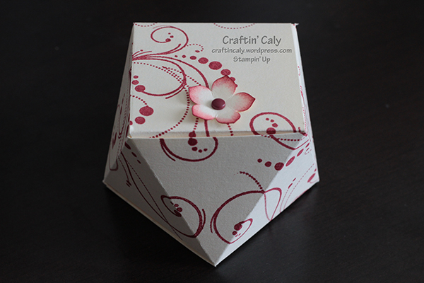 I’ve been itching for the past couple of days to make something, but I’m caught up on birthdays at the moment. So I decided I would make something new to me today. I follow Sam Donald, a Stampin’ Up! Demonstrator in the UK, on YouTube. She is very created and shared her version of a faceted box that she created using a box of Ghirardelli chocolates. The original tutorial and video can be found here. I’ve been wanting to make it, but she uses a 12 x 12 piece of card stock which I do not have any of plain that I can stamp on. So today, while re-watching her video over lunch, I decided to re-scale her instructions for those crafters who prefer using the more common 8.5×11 card stock. I made up templates and I hope it’s helpful for everyone who wants to make it.