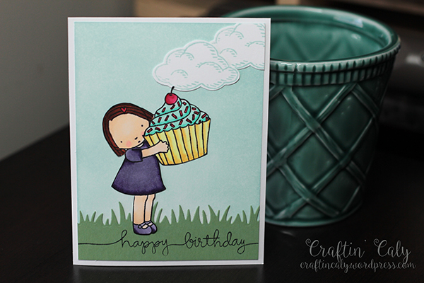 I used quite a few different products from different companies – the clouds using a Stampin’ Up! set, the sentiment from Simon Says Stamp and the grass border die from Lawn Fawn.