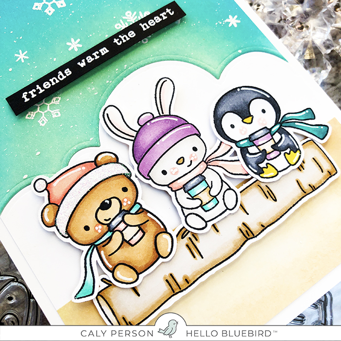 It’s day 2 of the Hello Bluebird Release Showcase and today, we’re focusing on Skating Party and Skating Together. My card today uses critters from the Skating Party set and ironically…I didn’t use any of the skating images…ha! They’re the lazy bunch – or just the super cute ones relaxing with their cups o’ Joe.