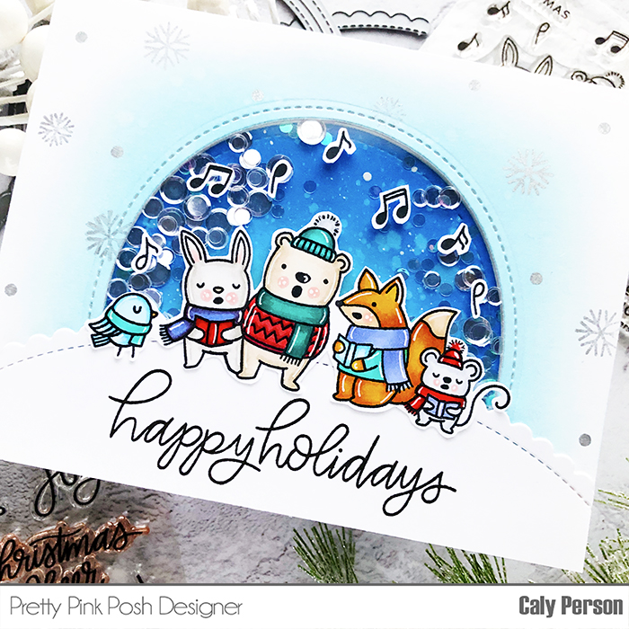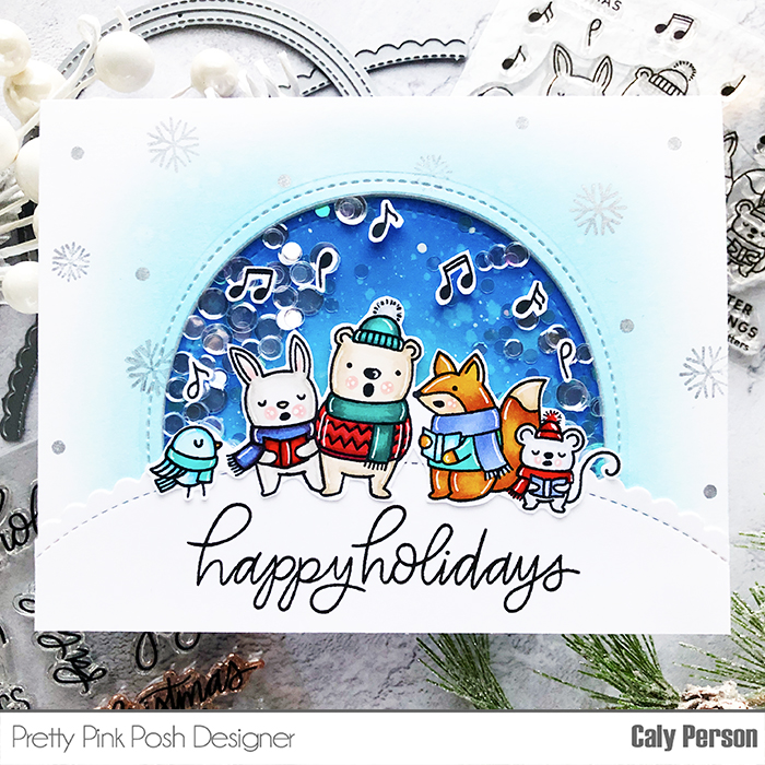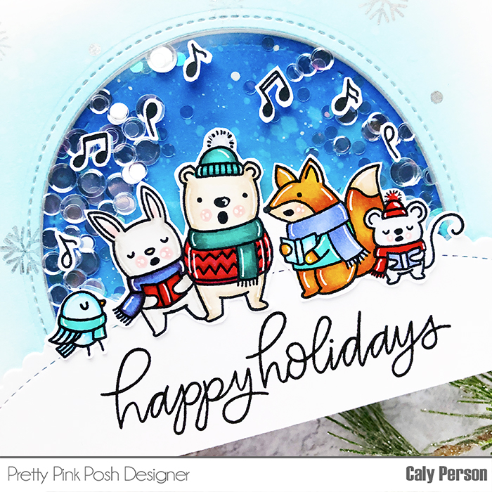 I’ve just come back from my first visit ever to New York City.  It was an incredible experience and I saw the biggest Christmas tree in my life!!  I can’t believe how quickly the month is going!  Only a few more holiday cards from me so I wanted to make another holiday card using Caroling Critters from Pretty Pink Posh.