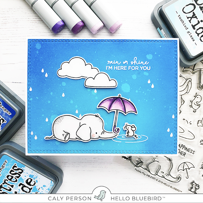 I’m back with another card for Hello Bluebird today. There isn’t a release this month, so we’re using the month to bring back our personal favorites. I can’t wait for spring to get here – we actually got some warmer weather this past weekend. I decided to make a card using the Puddle Play stamp set and decided to use parts of the Rainy Day stamp set also.
