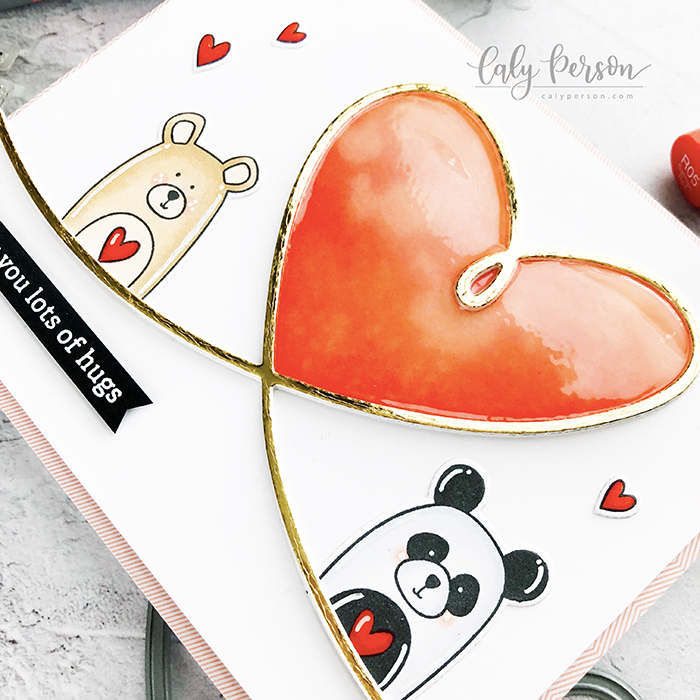 Very cute card and stamp set. What a great idea you had to color, re-insert and “lacquer” the die cut heart! The gold foil cardstock was also a nice touch … so simple but it adds just the right amount of interest. Love it!
