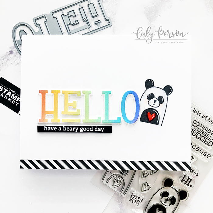 The final card is created with the Hello Serif die and accented by a bear and sentiment from Bear Hugs.