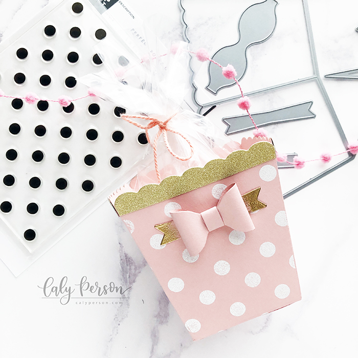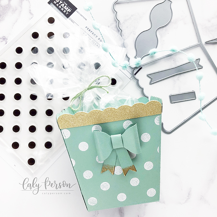 After die-cutting the box pieces, I also stamped them with the Perfect Polka Dot background stamp and embossed them with white embossing powder.
