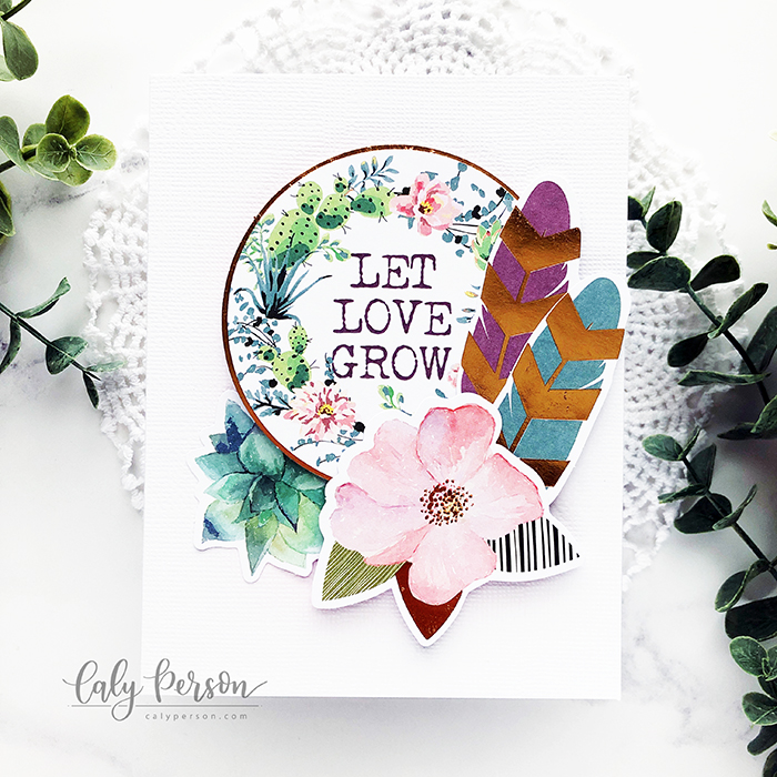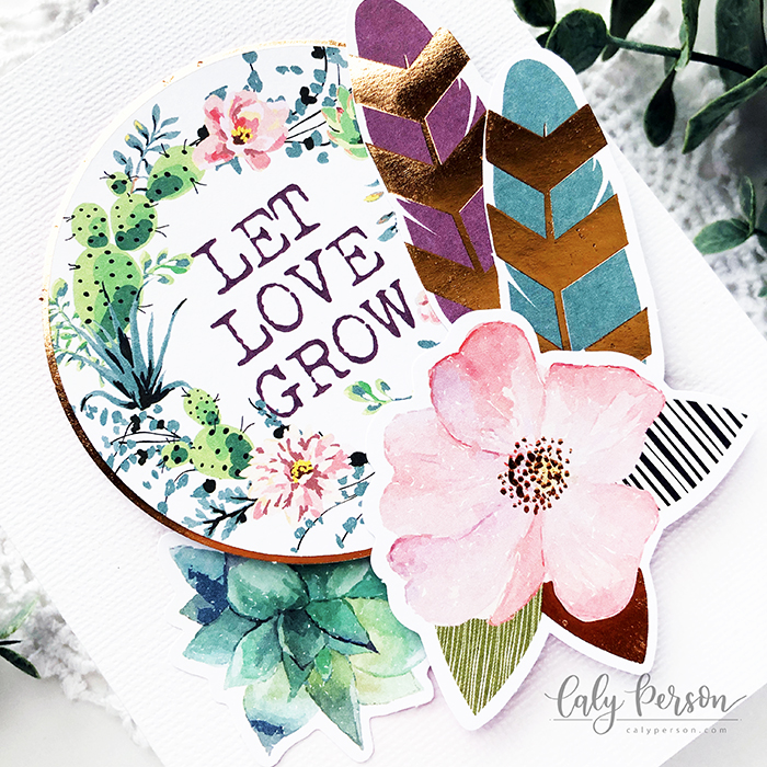 I love the large floral and succulent images on this card. The sentiment strip is one provided in the kit (there are lots to choose from)!