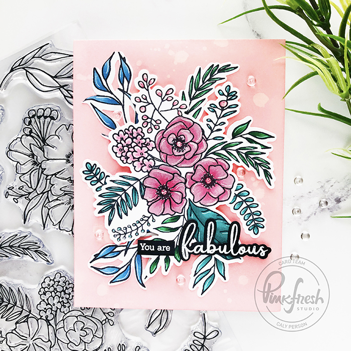 This card was created for Diecutting Essentials Magazine (47th edition) in February. I used Fancy Blooms from Pinkfresh Studio and colored with Copic markers (BG57, BG09, B45, B34, G09, G17, R85, R83, R21, R32). The background is ink-blended with Spun Sugar and Abandoned Coral Distress Oxide Inks. All the supplies are listed below π