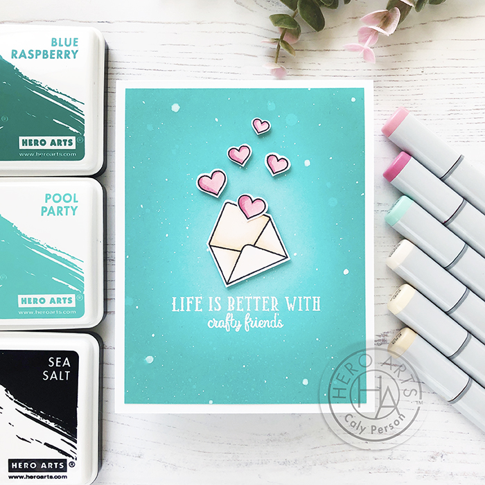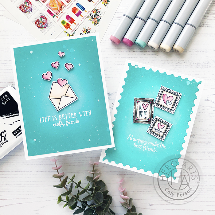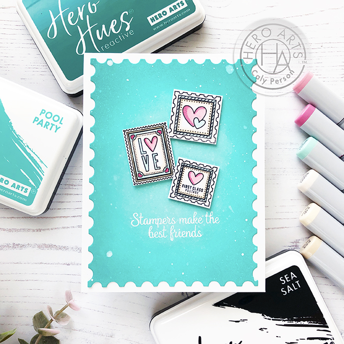 I’m on the Hero Arts Blog today sharing ways to use the new Sea Salt (white) Reactive Ink! I made two cards to share as examples.