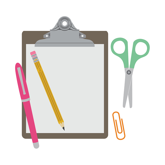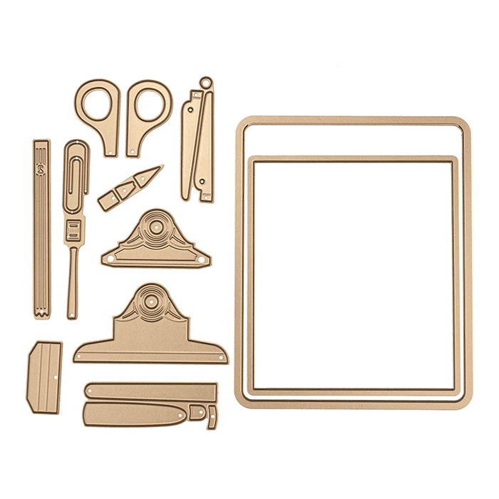 I die-cut all the different elements with various cardstocks to use the Large Die of the Month. I also used the smaller rectangle die to cut one of my notebook paper panels to fit the clipboard card.