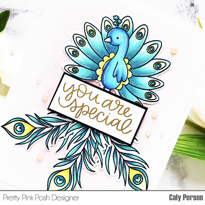 I’m stopping by today to share a card using Peacock Friends from Pretty Pink Posh! It’s been a while since I’ve seen anything created with it so I thought I would refresh people’s memories. I peacocks (especially their color).