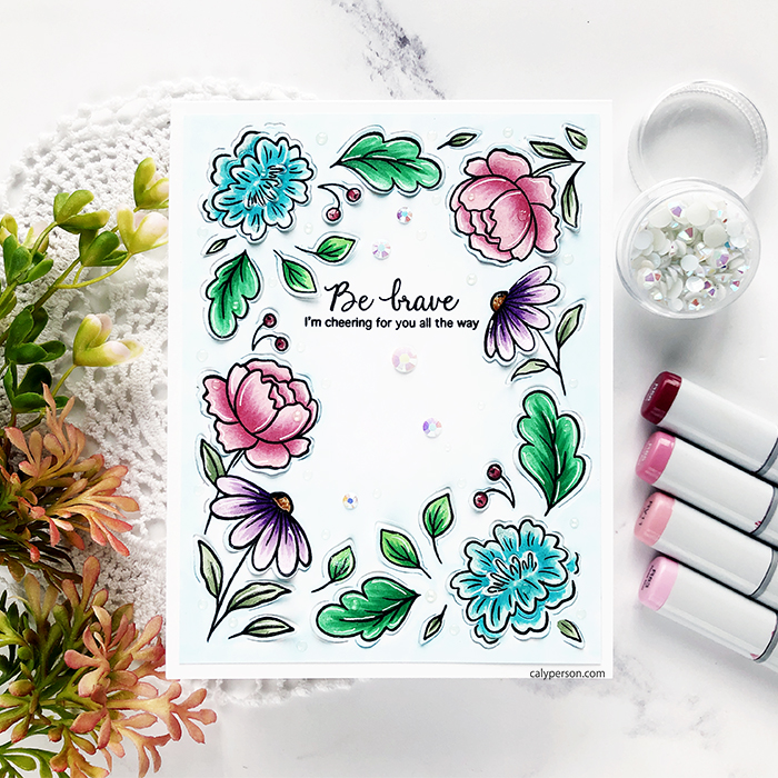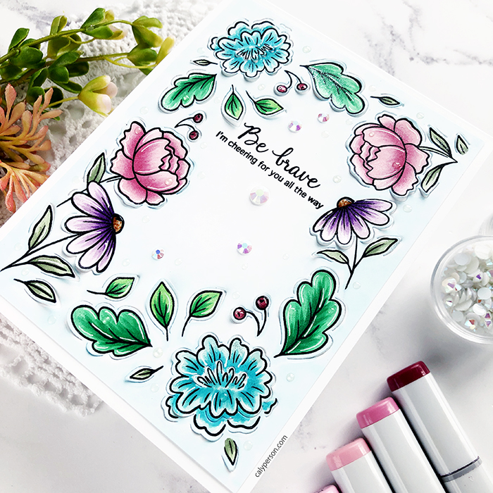 Hello and welcome to a special Stamptember set designed by Pinkfresh Studio for Simon Says Stamp! The Partial Cut Floral Frame stays true to Pinkfresh Studio’s elegance. The flowers are designed to frame an A2-sized card and are beautiful!