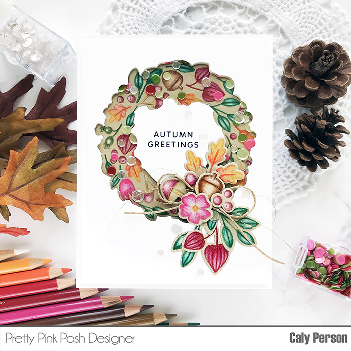 Fall is upon us and I decided to pull out some fall-themed products to use. Today, I’m sharing a card made using Autumn Wreath by Pretty Pink Posh.