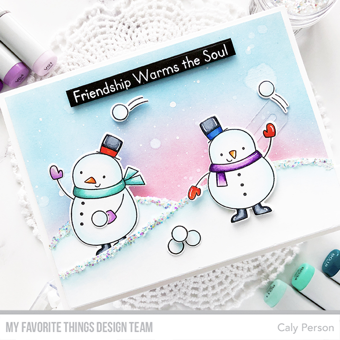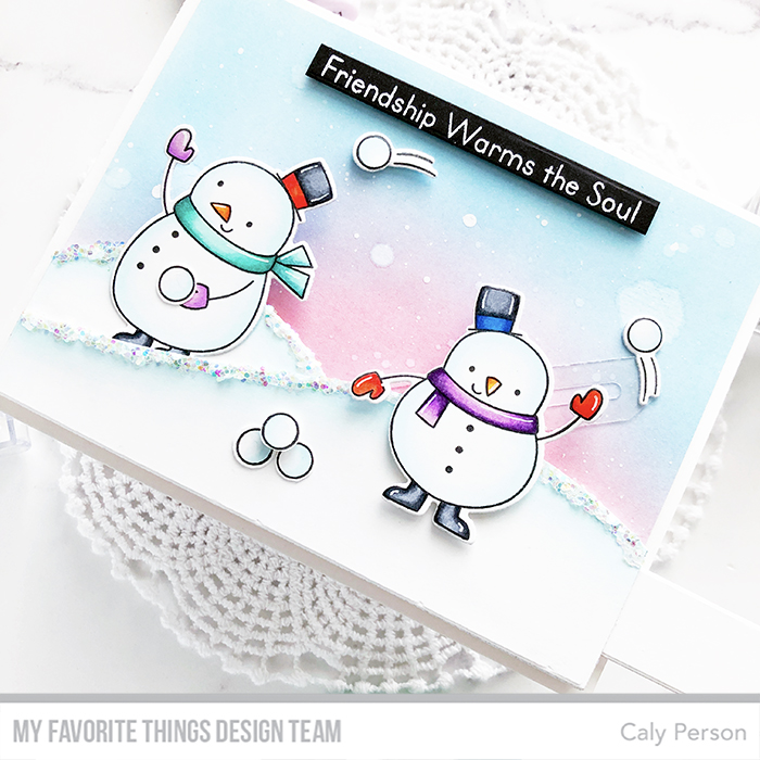I’ve created the card to show these snowman friends launching snowballs at each other. If you’d like to see the process, please check out my video below or on my YouTube channel :).