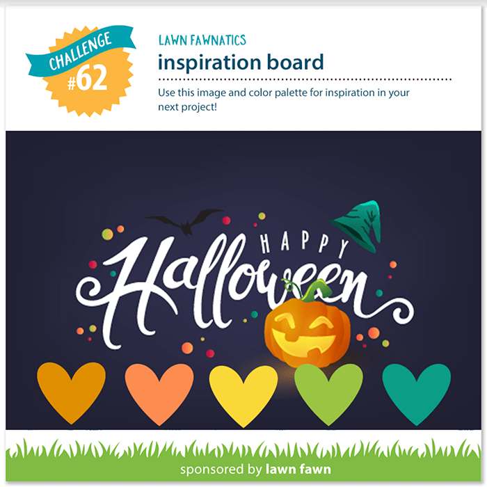 It’s time for a new challenge with Lawn Fawnatics! The current theme centers around the following inspiration board. You can follow the halloween theme, the colors below, or both!