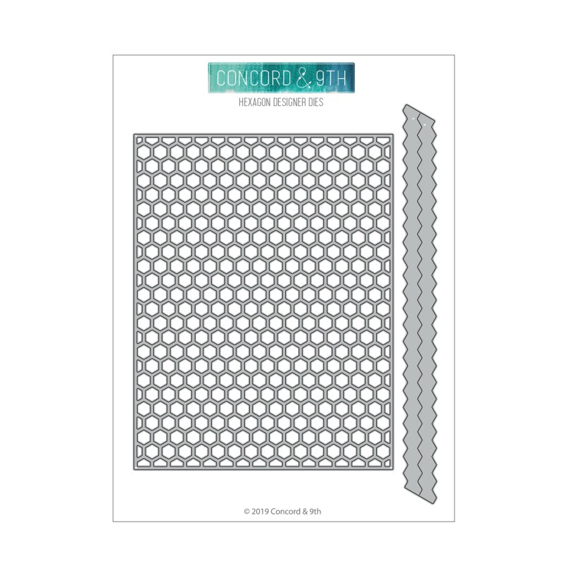 A couple of weeks ago, I got to play with the new Concord & 9th Hexagon Designer Die. The idea is to create a canvas full of hexagon openings that you can in-lay with to create a design – much like stitching but with in-lay hexagons.