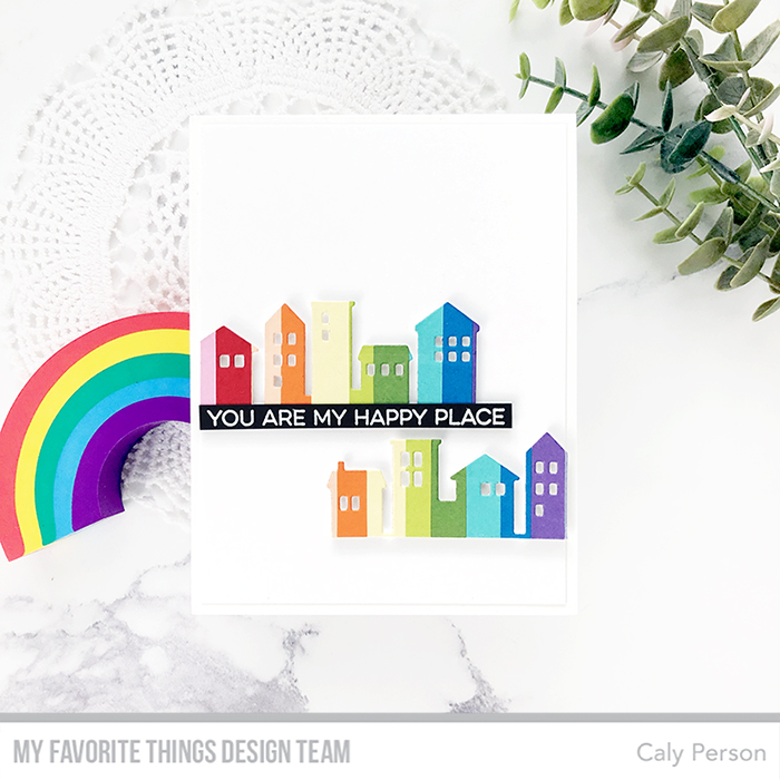 I decided to make my card a happy one based on the simple sketch for this week and gave it some color by paper-piecing a rainbow using various MFT cardstocks.