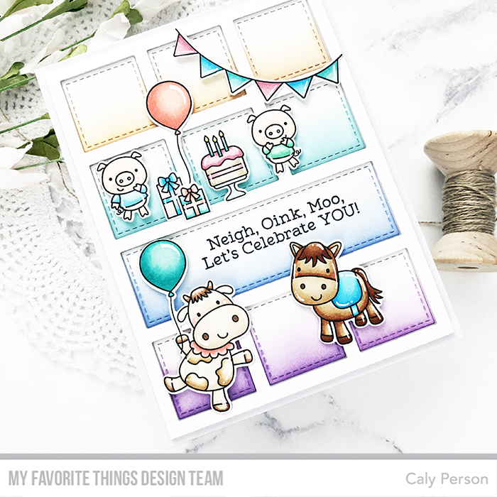 We’re partying with another countdown day until the MFT Vault opens tomorrow (at 10am EDT)! I’m sharing a card made using the Party Animals set and these little farm critters are just too cute!