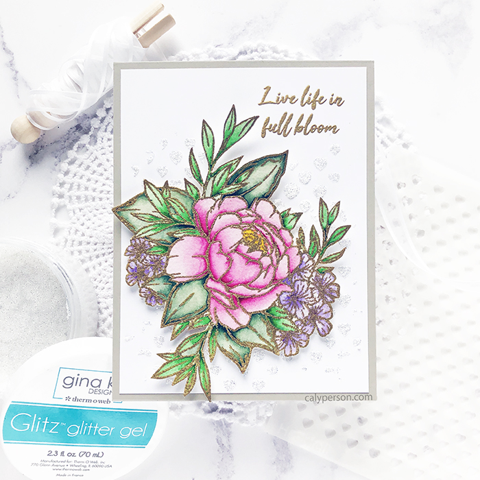 Today, I’m sharing two cards from Gina K Design’s latest release! These cards are special to me because they’re designed by my friends, Hannah Drapinksi and Emily Loggans – who are sisters! So much talent from that family! Hannah illustrated the Massive Peony stamp set and Emily illustrated and hand-lettered the sentiments on the Be the Rainbow stamp set.