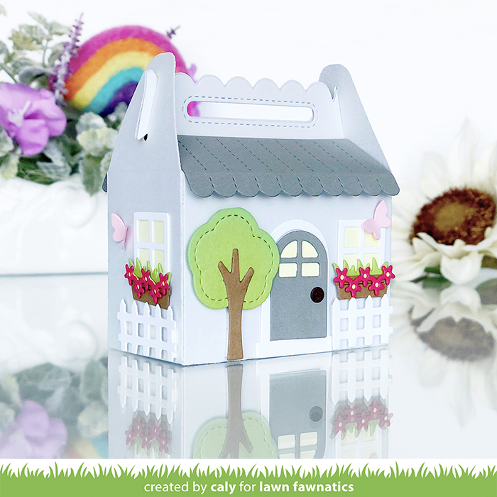I decorated my treat box on the front and sides to give it more interest and color and I’m glad I did. I think the window, fence and flowers really makes it more cohesive.
