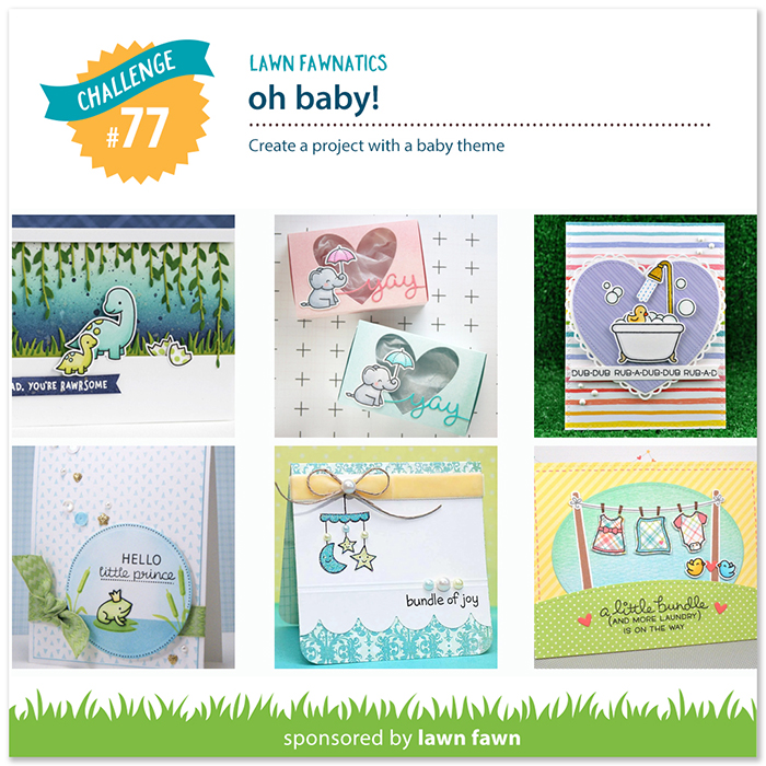 Kelly Marie, one of the owners of Lawn Fawn is due this week and we thought we would celebrate by making the next Lawn Fawnatics Challenge a baby theme!