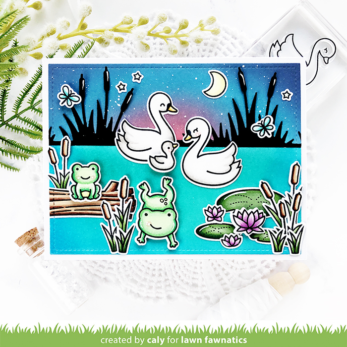For my scene today, I used both the Swan Swoiree and Toadally Awesome sets to create and evening pond scene. I started first by stamping and coloring all my images.