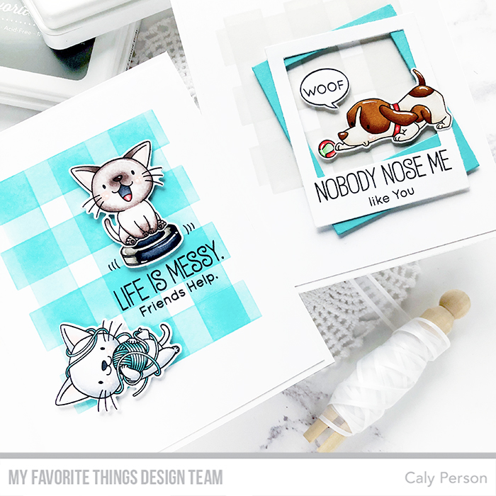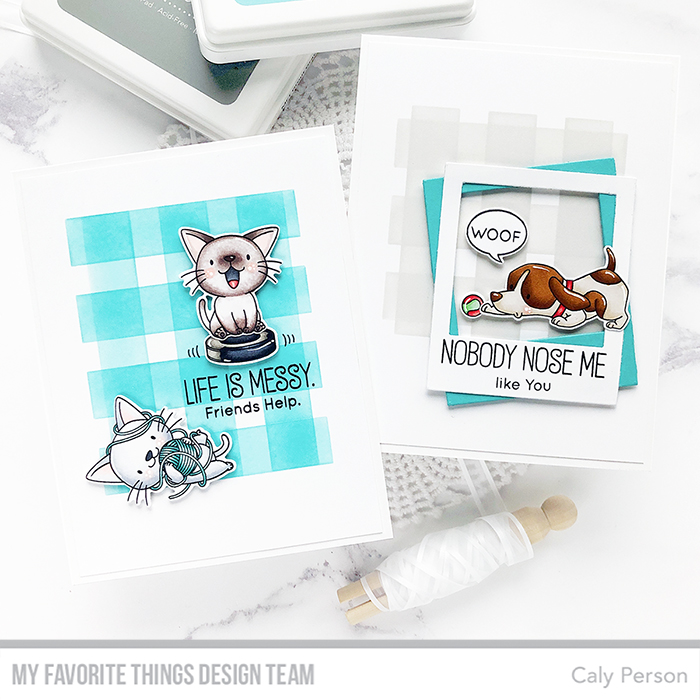 There’s a new MFT Release coming up and today, we’re kicking off the countdown! Calling all pet-lovers! I’ve created a set of simple cards for dog and cat lovers. I’ll be honest – cats scare me and I don’t usually make cards with kitties but the new Cat-astrophe set is adorable! The Woof Pack set is just as cute!