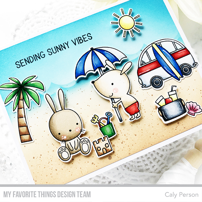 Today’s card features the Sunny Vibes set and it makes fora really fun beach scene! I started by stamping and coloring my images with Copic markers.