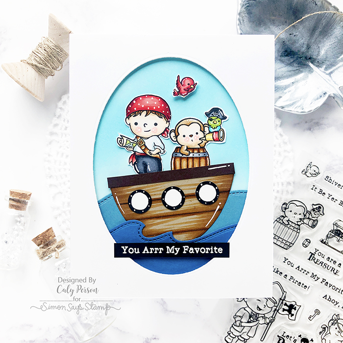 Tonight, we feature a collaborative set with Sugar Pea Designs called Shiver Me Timbers! This set is full of fun pirate-themed stamps and I love that the adorable Chunky Monkey is in this stamp set!
