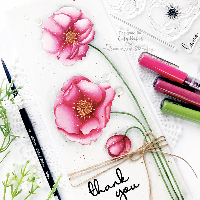 Welcome back for another STAMPtember release! Tonight, we’re featuring a beautiful collaborative set from Paper Rose. The Long Stem Flowers set is a 6″ x 8″ set with beautiful stems and flowers (which I think are poppies). Naturally, I decided to create a slimline card with these long stem flowers :).
