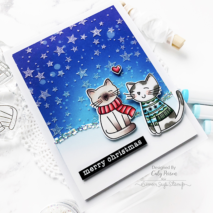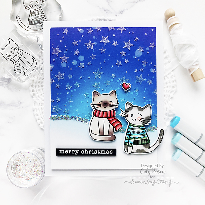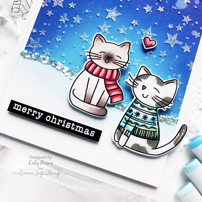 Welcome back for another Simon Says Stamp Holly Jolly Release project! Today, I’m using a set designed by Kristina Werner – we all know she loves cats so this one is is for her (since I’m afraid of cats). I don’t mind coloring cute Christmas Kitties though – it’s a good compromise, right? πŸ˜‚