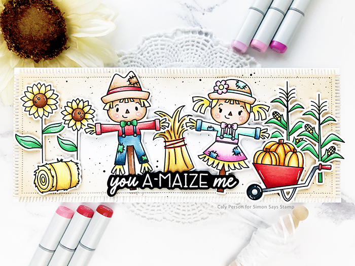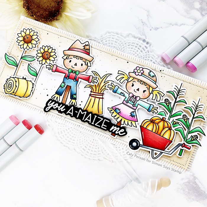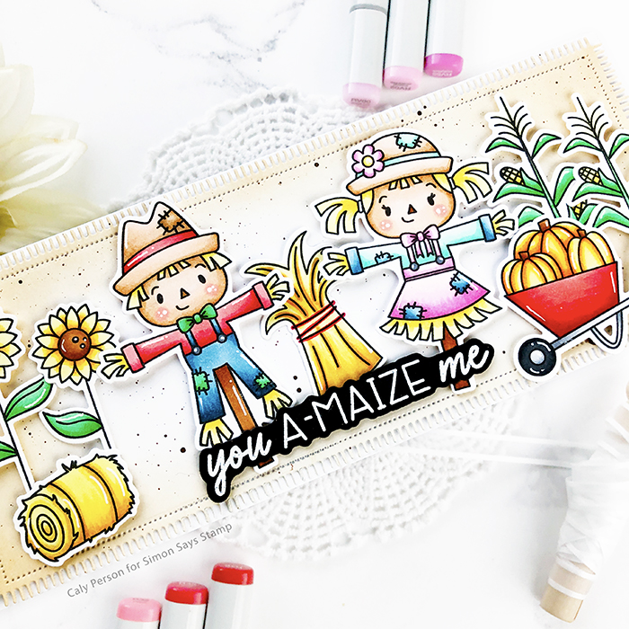 I’m excited to share today’s card with you. I’m trying to squeeze in as many fall cards as I can before winter begins. I love these scarecrow from the recent Honey Bee Stamps set called Let’s Hang Out.