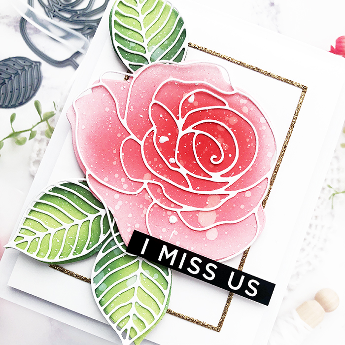 I framed my images with a gold A2 Thin Frame and attached a sentiment from the Reverse Miss You Sentiment Strips. I hope you’ll check out the entire release and that you’re inspired by my card! Thanks so much for stopping by today!
