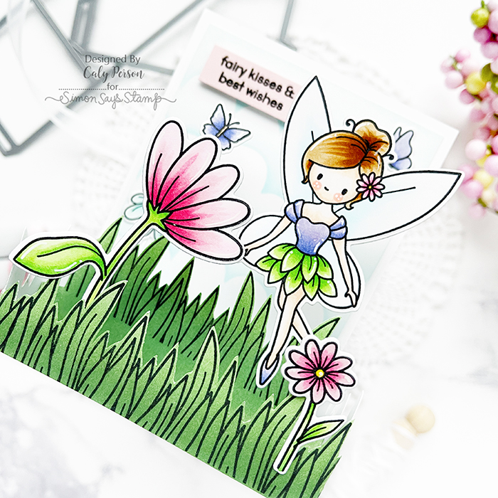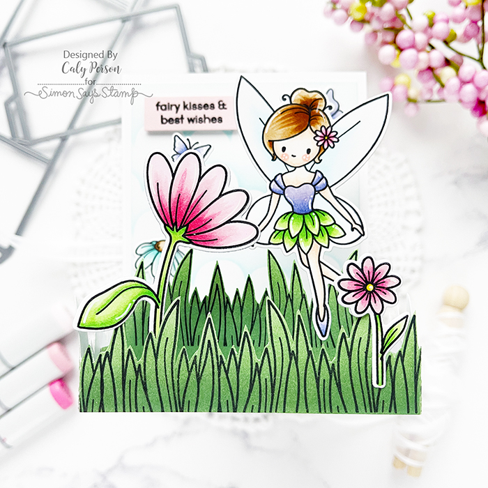 I would’ve used the cute grass die from the Box Card Borders die for this card, but the Fairy Tale Spinners card comes with a nice grass stamp so I used that instead to create my box card.
