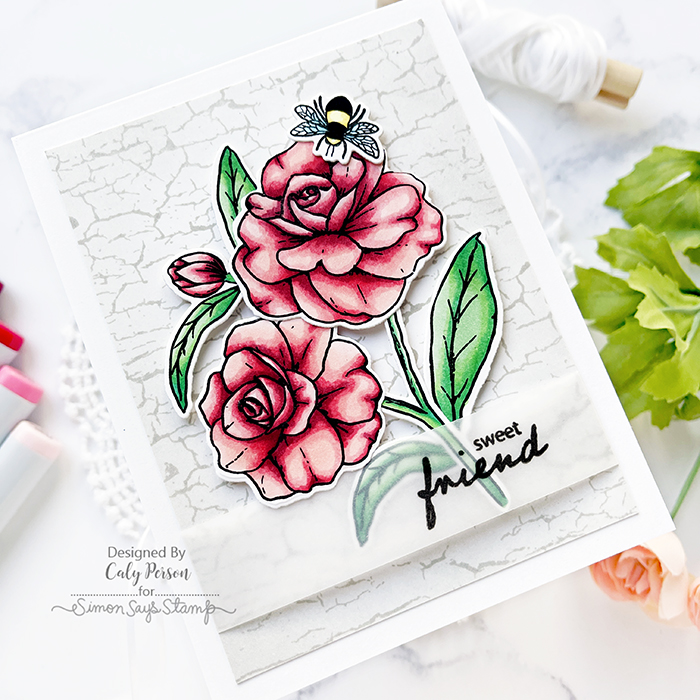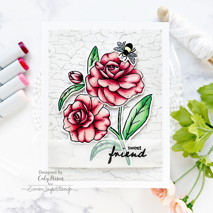 I’m back with another card from the Simon Says Stamp Love You, Too Release! Today’s card features the Sweet Friend stamp and die set. It’s a beautiful rose set that I stamped and colored with Copic markers.