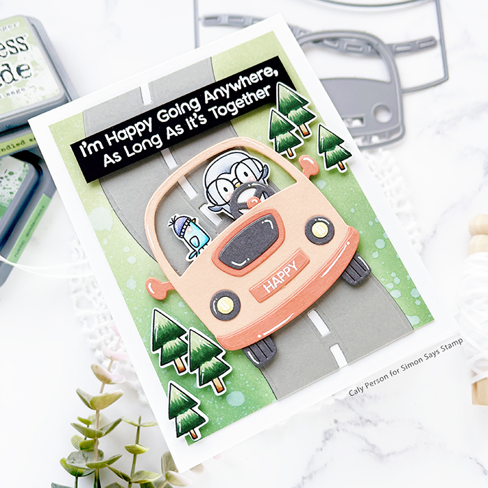 I’ve got a fun card to share – a good mixture of Copic-coloring, paper-piecing, and ink-blending! I love the Carpool dies from MFT and paired it with the Road die to create this cute scene.