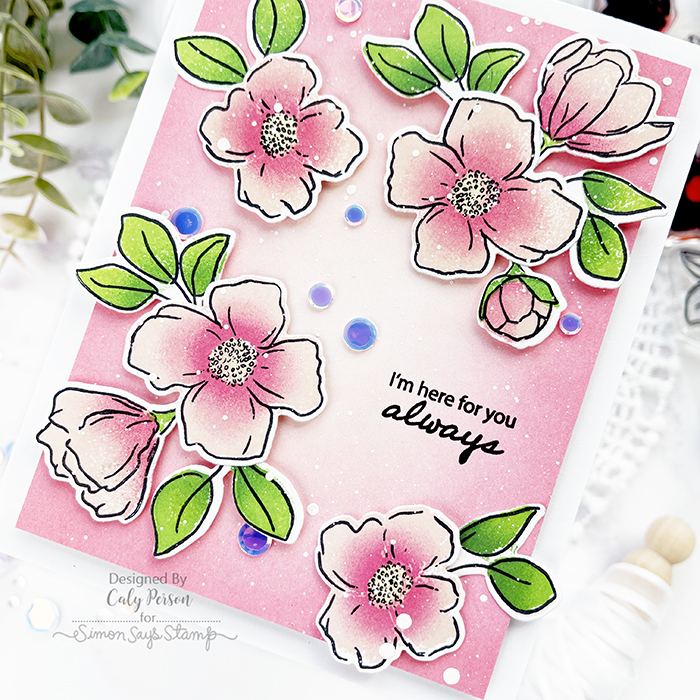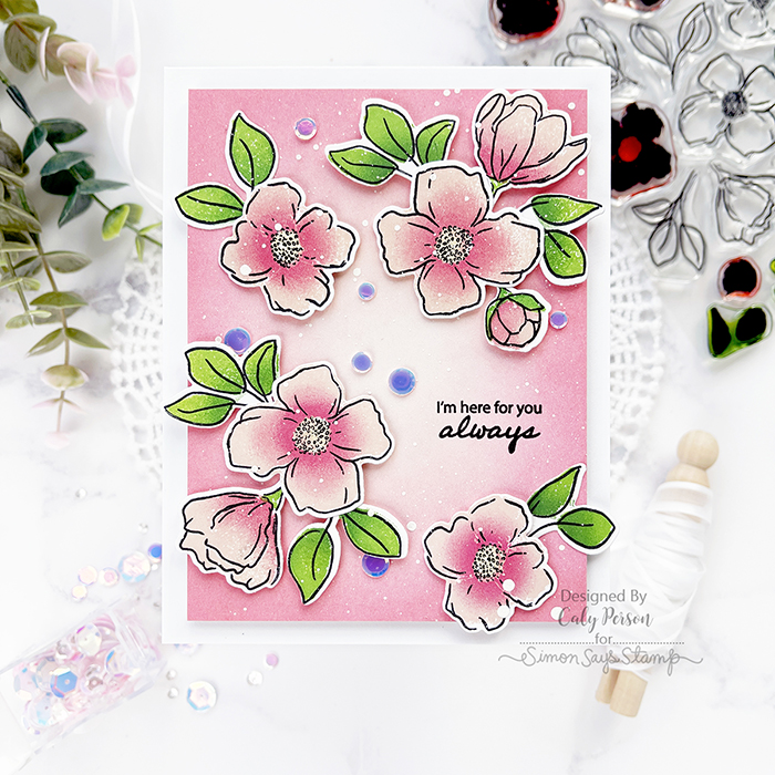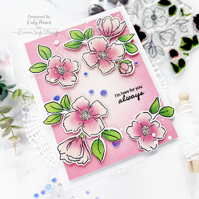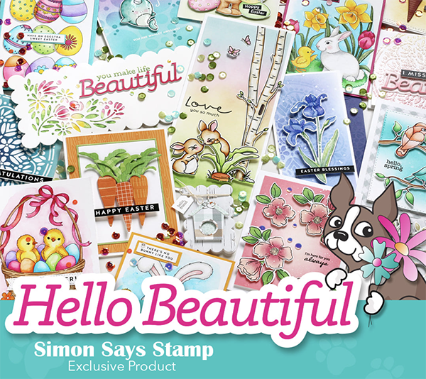 We are celebrating the Simon Says Stamp Hello Beautiful Release! I’ve got a card to share using a floral set – you can color or stamp the Blooming Meadow set. I love options and I love not having to color sometimes!