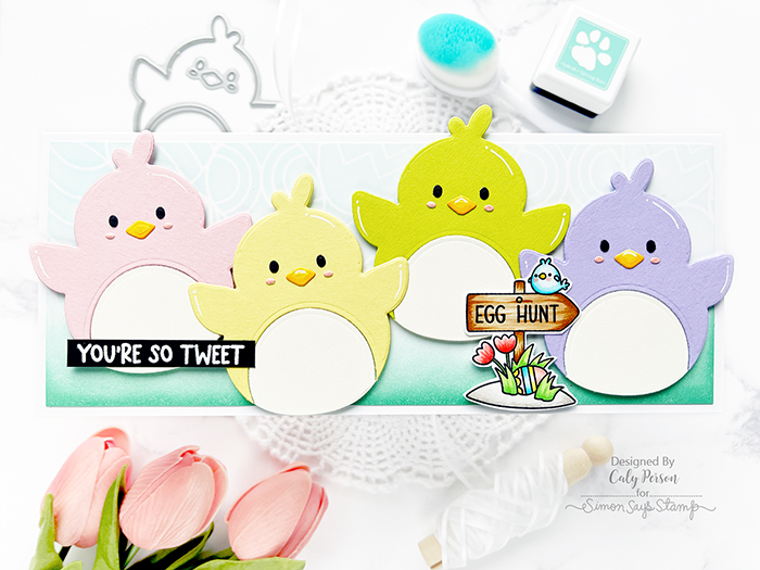 I’m so excited to share this card with you! The Simon Says Stamp Limited Edition Easter 2021 Card Kit is here and it is jam packed with adorable products! I used a several things from the kit to create my project today, including the Little Chick Die, Egg Hunt Stencil, You Make Me Hoppy stamp set, all the single cardstock sheets, ink and blending brush!