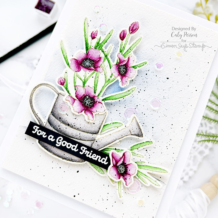 It’s weird to say – but I’ve never watercolored inanimate object before. I’ve only watercolored florals – I don’t know why watercoloring critters seems intimidating. Now that I’ve watercolored a watering can, it doesn’t seem so bad! I stamped with a light ink and watercolored with Daniel Smith Watercolors.