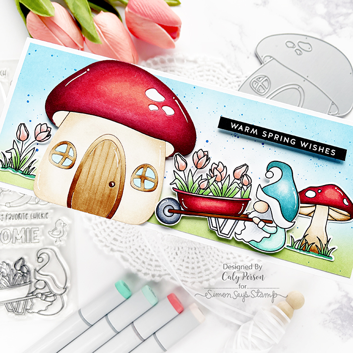 Next, I stamped and colored my images from the Spring Gnomie stamp set and colored them with Copic markers as well.