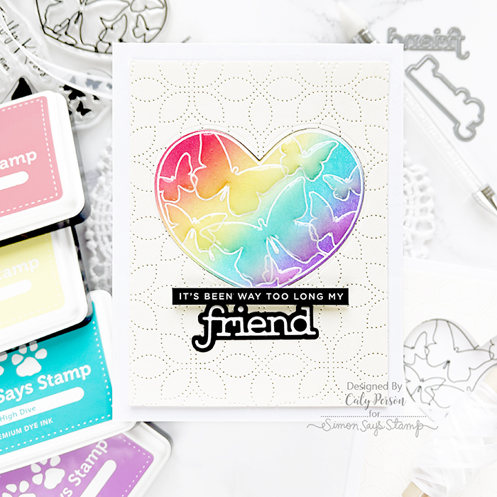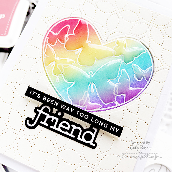 I attached my sentiments from the Reverse Miss You and Friend die and finished by adding Glossy Accents to my butterflies to give them shine and dimension. I wish I had die-cut the heart window up higher but it’s still a cute card and I hope you like it!