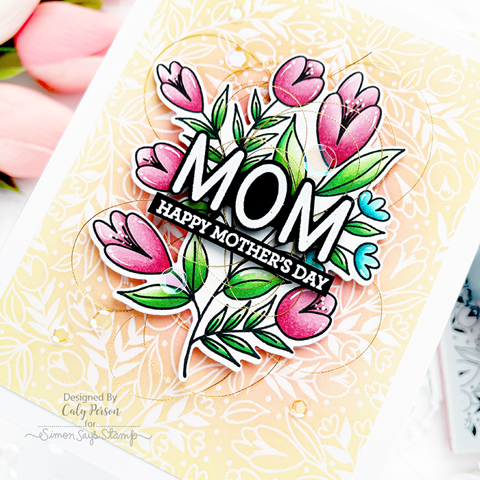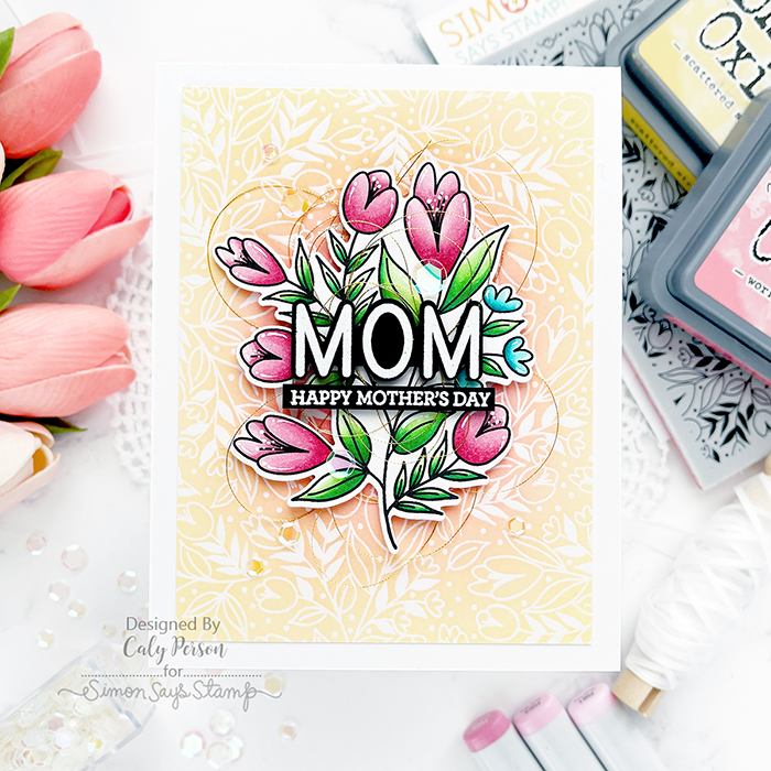 Welcome to my first share for the Simon Says Stamp All The Feels Release! This release is full of springtime, mom-themed, and sentiment sets! I hope you’re excited! My card tonight uses two new sets – the Spring Flowers Background stamp as well as the Cathy Zielske Sassy Mama set! I didn’t exactly use sassy sentiments but now you know it’s not all sassy!