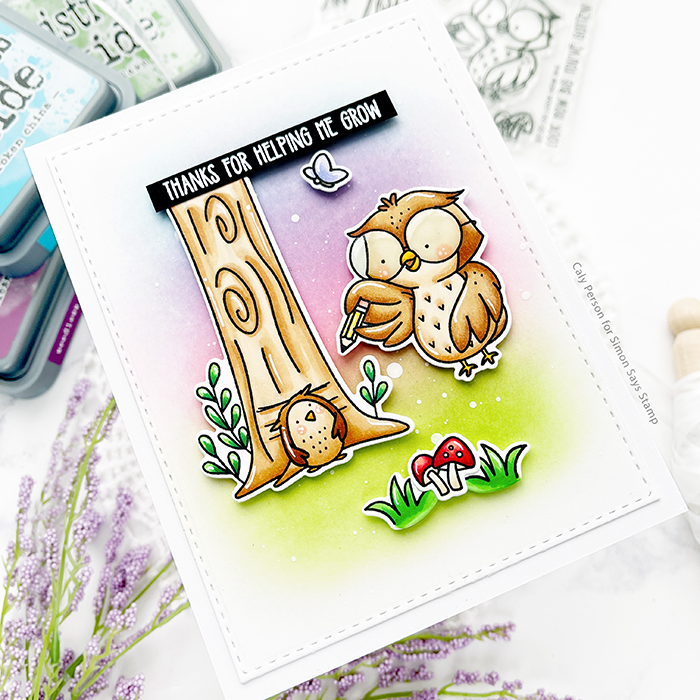 To finish, I attached my images and embossed sentiment using foam adhesive. I also added glossy accents to the bigger owl’s glasses for more interest.