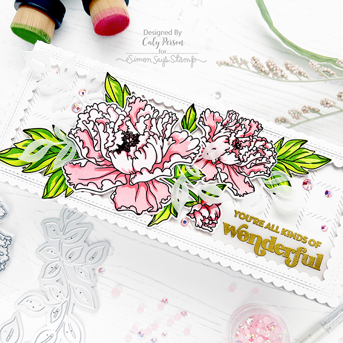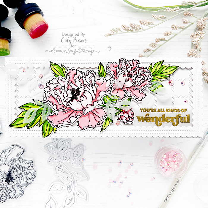 I was on the Simon Says Stamp Blog and YouTube Channel yesterday and want to share my project with you today. I used the Friendship Blooms Stamp, Layering Stencils, and Dies along with other Pinkfresh Studio products too create today’s slimline card.