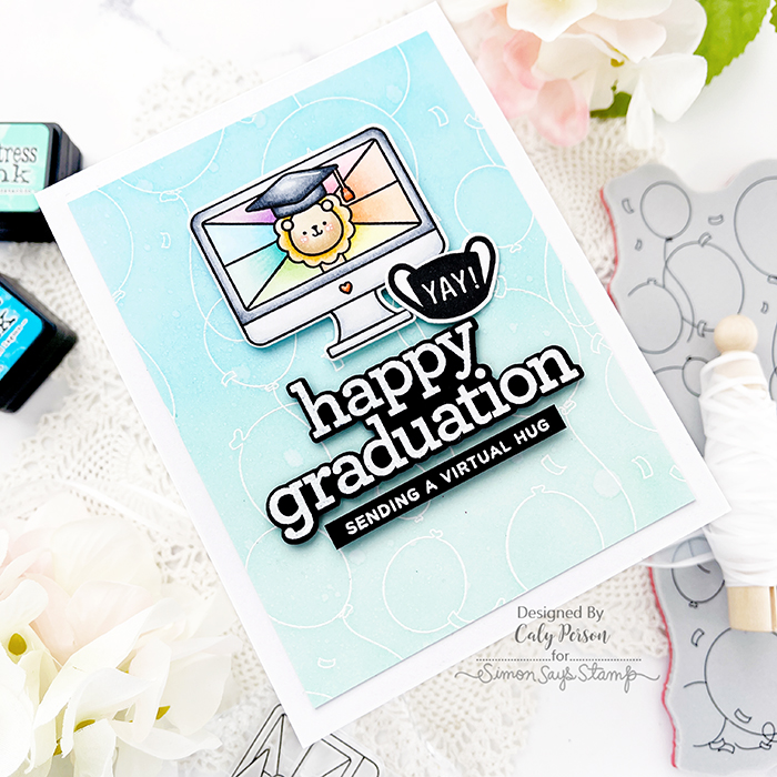 Graduation time is nearing and the Simon Says Stamp Born to Sparkle Release contains lots of graduation goodies! Today, I’m using a stamp set from Cathy Zielske called Virtual Grad – so appropriate for how students are schooling right now!