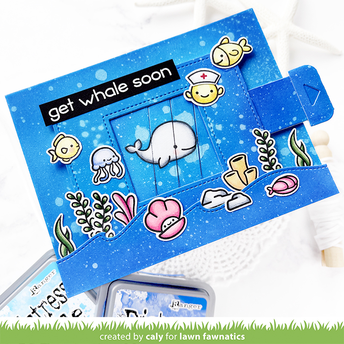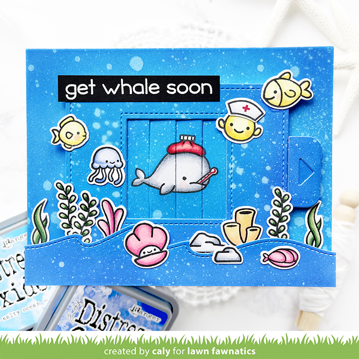 I thought it would be fun to use the whale images from the Get Well Before ‘N Afters set. I combined it with other ocean images from Ocean Shell-fies and You Are Sublime. It’s been a while since I played with the Magic Picture Changer dies so it was fun to make this card!